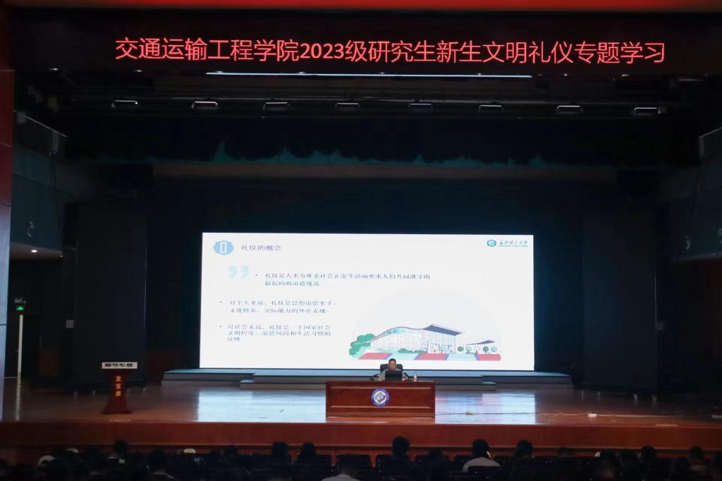 9月20日下午,交通运输工程学院在云塘校区大会堂开展研究生文明礼仪专题讲座,本次讲座由研究生辅导员周浩主讲,2023级全体研究生新生参加。