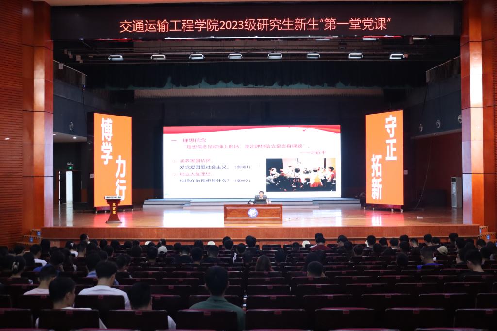 9月22日上午9:00,交通运输工程学院在云塘大会堂开展2023级研究生新生“书记第一堂党课”,交通学院党委书记刘朝辉出席并授课,本次讲座由研究生辅导员周浩主持,全体2023级研究生新生参加。