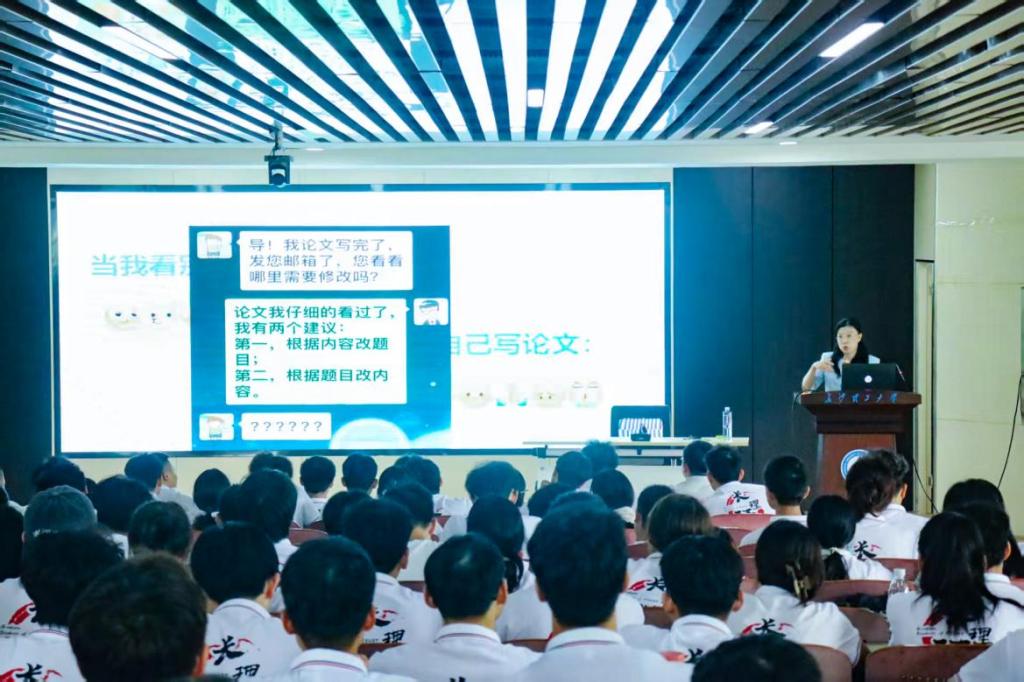 张雪梅老师以“高效科研的‘双引擎’:图书馆资源与AI应用”为主题,系统讲解了学校图书馆丰富的纸质与电子文献资源及各类专业数据库的使用方法,并重点讲解了如何结合人工智能工具提升文献检索、管理和分析效率。她通过实例演示,生动展示了AI技术在信息整合、论文选题、写作辅助等方面的实际应用,为新生即将开始的科研之路提供了实用指导。