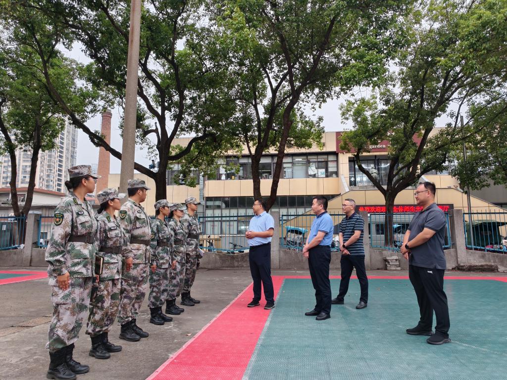 9月18日下午,交通学院党委书记成华、副院长(主持工作)吕松涛、副书记兼副院长任志祥、副院长叶群山一行至训练场慰问参训新生及带训教官。
