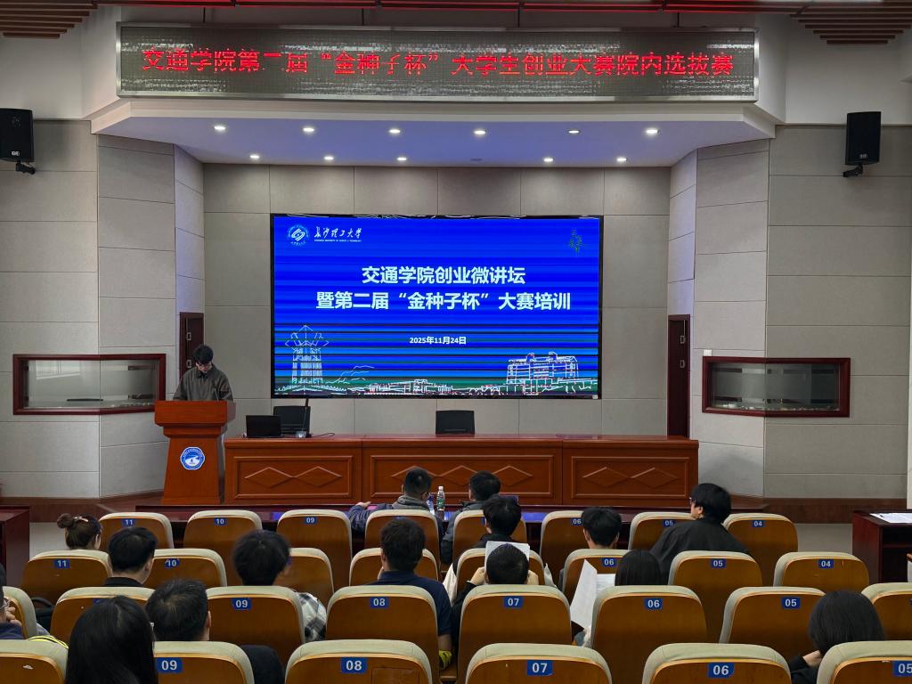 为激发大学生创新创业热情,助力优质项目孵化落地。11月24日下午2点,交通学院在云塘校区工科二号楼B301举办创业微讲坛暨第二届"金种子"大赛赛前培训。活动特邀全国万名优秀创业导师游勇担任主讲,学院党委副书记任志祥、辅导员彭笠以及全体参赛项目指导老师和成员参加,11支参赛队伍全员参与,现场互动热烈,干货满满。