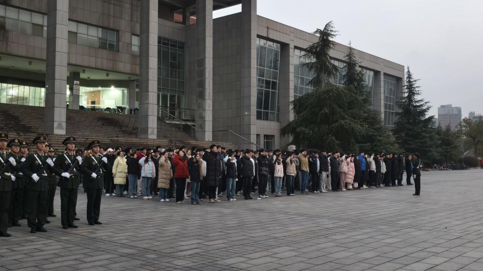 1月5日清晨,交通学院于云塘校区图书馆前坪举行升旗仪式。交通学院全体学工干部,400名学生代表参加。