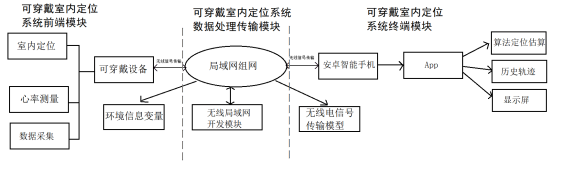 该定位系统的结构示意图和结构框图分别如图1、图2所示。将系统分为三个模块:局域网的可穿戴室内定位系统的前端模块、终端模块、数据传输处理模块三个主要部分。