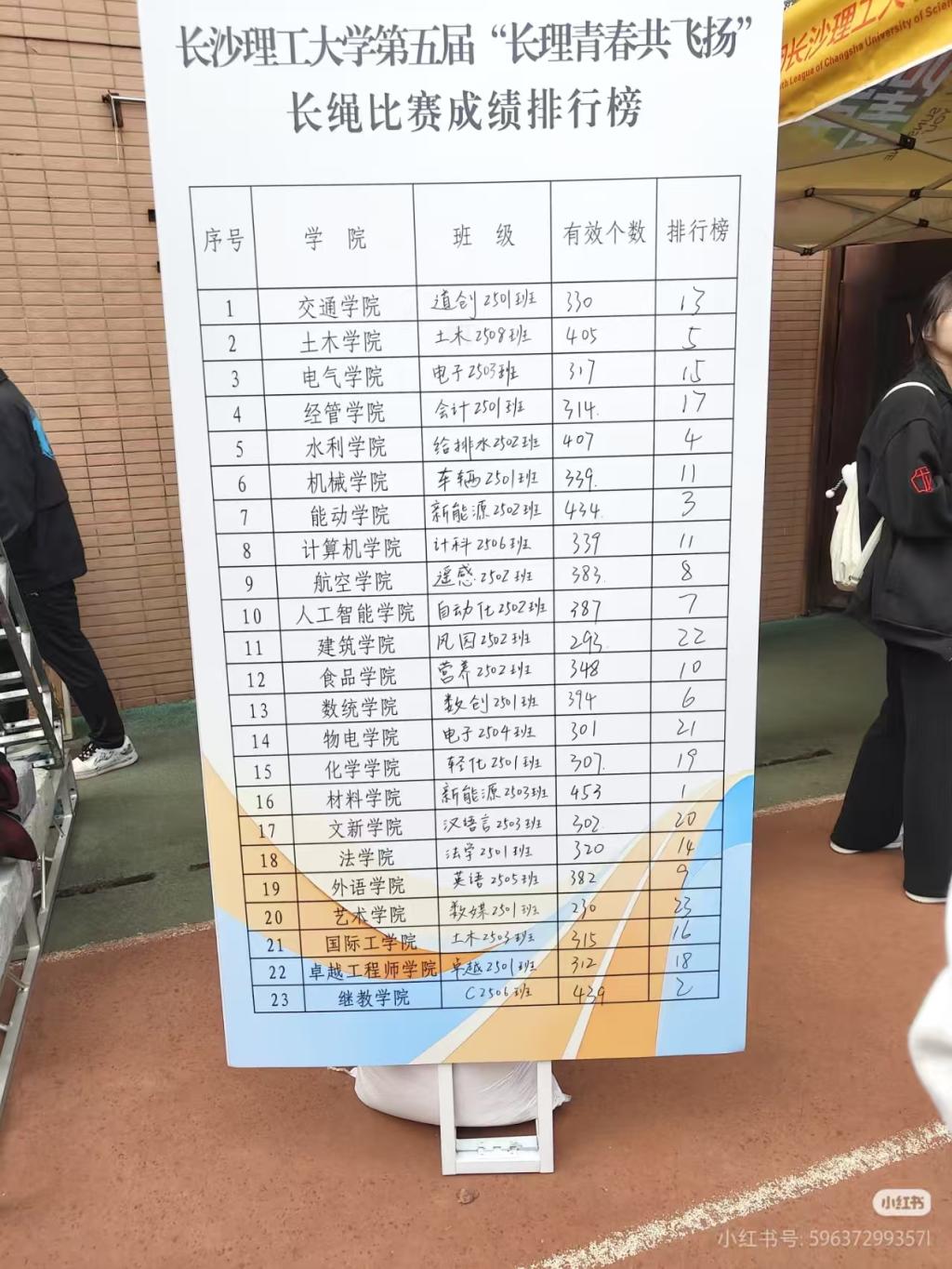 比赛当日,赛场上气氛紧张而热烈。随着裁判一声令下,继续教育学院的队员们迅速进入状态。长绳在空中划出优美的弧线,队员们如游鱼般依次穿梭,节奏稳定,衔接流畅。最终,队员们稳定发挥,以总数439个勇夺全校第二名,成为赛场上一匹引人注目的“黑马”。