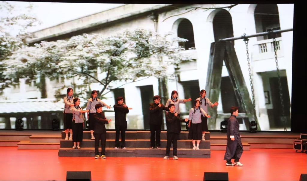 继教学子以饱满的热情、昂扬的姿态登上舞台。一声“三十功名尘与土,八千里路云和月”荡气回肠,带领观众穿越历史长河,感受壮志豪情;一句“梦里花开多鲜艳,梦里花开江红遍”融汇古今诗意,展现了对英雄精神的追忆与传承。朗诵层层推进,情感逐步升华——“谁道英雄无觅处?冲冠怒唱今犹在”、“当年送你一征辞别,这盛世已如你所愿”,既有对历史的深切回望,亦饱含对当今盛世的自豪讴歌。尾声“且听继教吟诵,踏破贺兰山阙”更以磅礴之势,展现了继教学子奋发向上、敢于拼搏的精神风貌,赢得现场阵阵掌声。