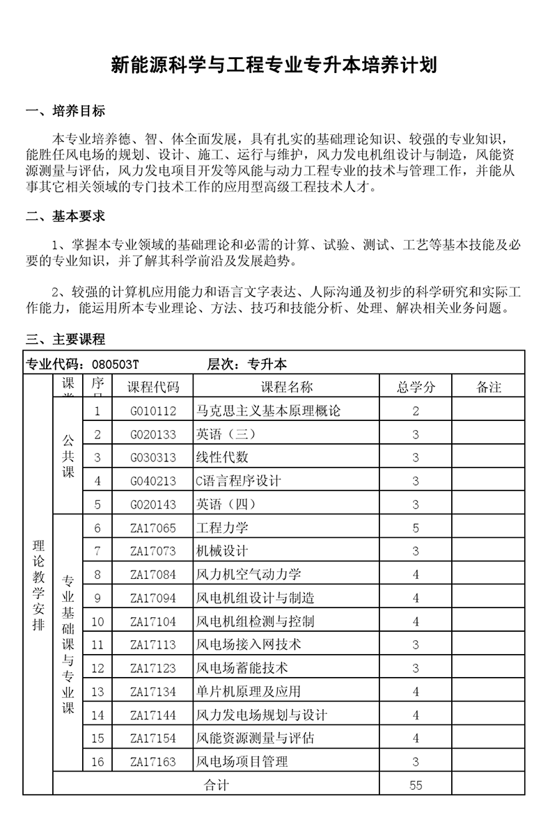 本科培养计划-专业代码:080503T 新能源科学与工程专业