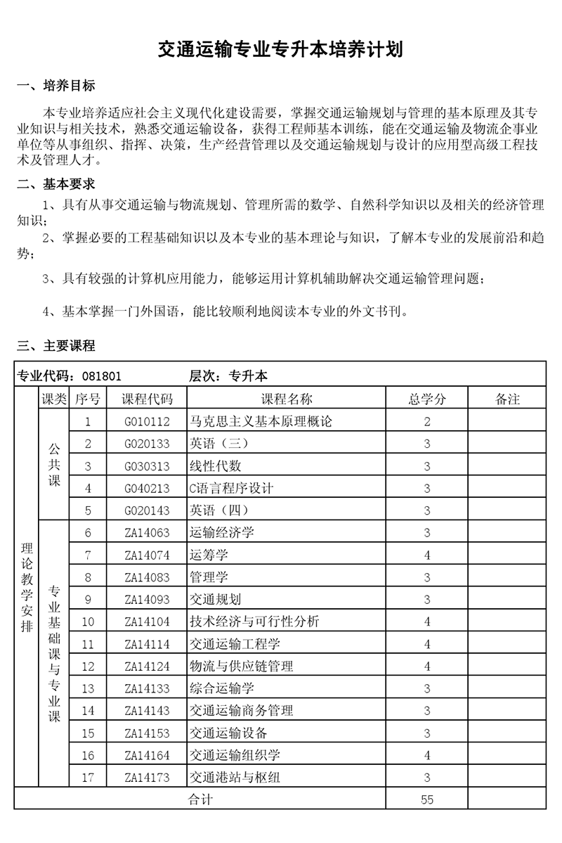 专科培养计划-专业代码:600203 道路运输与路政管理专业