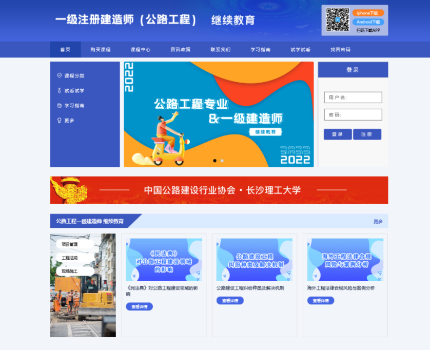 我校与中国公路建设行业协会紧密合作,经过近一年的酝酿沟通和设计修改,携手开发的一级注册建造师(公路工程专业)继续教育网络学习平台(www.chhca.org.cn)。现已正式开通运行。
