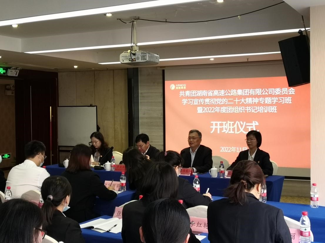 2022年11月7日,由湖南省高速公路集团有限公司委托、我校承办的“共青团湖南省高速公路集团有限公司委员会学习宣传贯彻党的二十大精神专题学习班暨2022年度团组织书记培训班”,在云塘校区国际学术交流中心正式开班。湖南省高速公路集团有限公司党委副书记、董事罗卫华,2025年新澳门原料网站党委委员、副校长谈传生教授、校属继续教育学院院长邹兴平教授参加了本次开班仪式。
