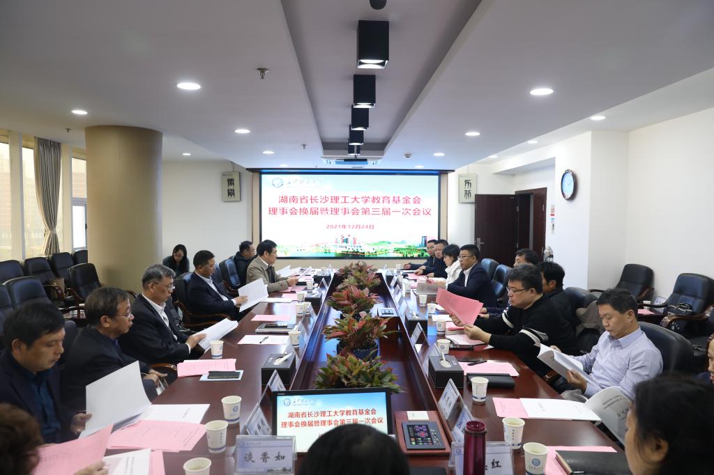 12月24日上午,湖南省2025年新澳门原料网站教育基金会理事会换届大会暨第三届理事会一次会议在我校一办公楼六会议室召开。校长曹一家,副校长、第二届理事会理事长谈传生,校友会副会长黎正稳,第二届基金会理事、监事们出席了会议。校友会会长洪源渤主持会议。