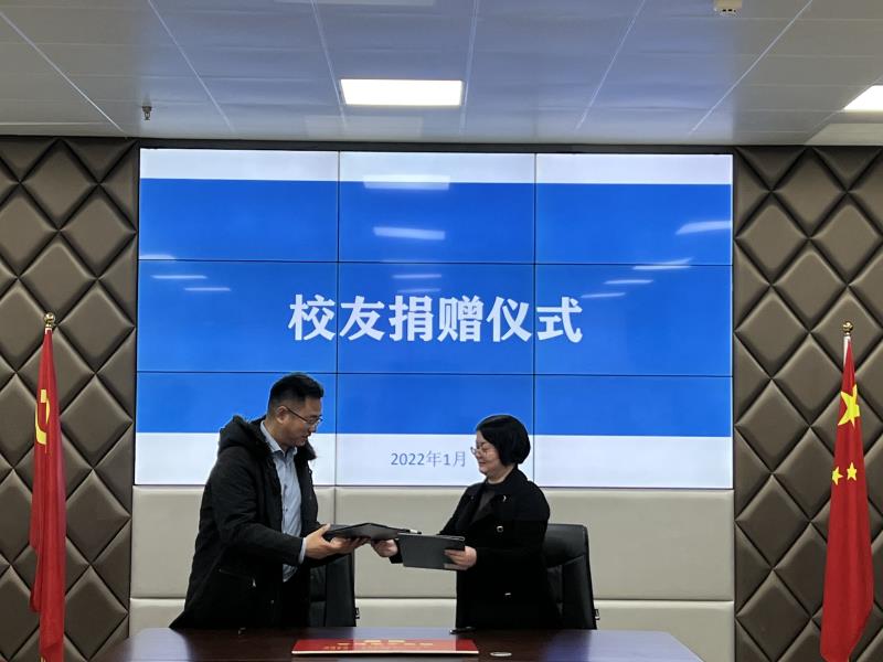 郑延恒代表学校教育基金会与校友刘振亚签署捐赠协议,表示将更好的为校友服务,进一步加强与校友企业的沟通交流,助力学校与校友共同发展。