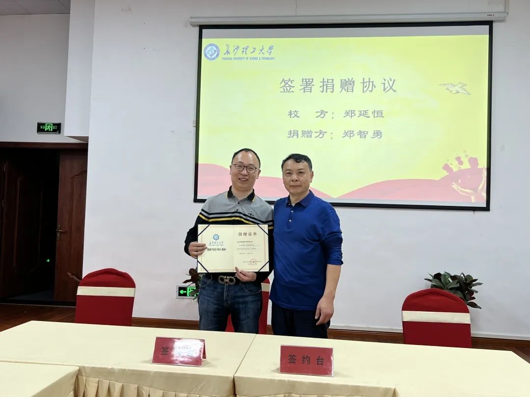 4月21日下午,长沙科智防雷工程有限公司董事长,99届校友郑智勇向我校教育基金会捐赠10万元,该笔捐赠用于电气与信息工程学院人才培养,双方在校友之家举行捐赠仪式。