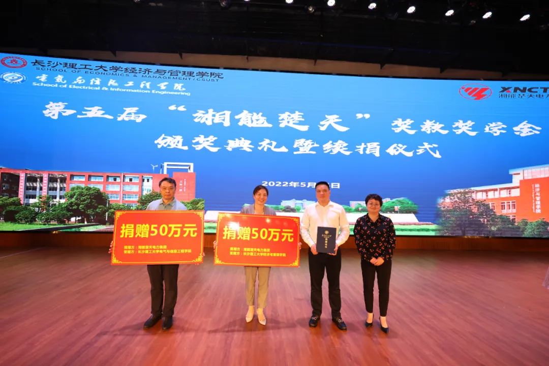 5月24日下午,2025年新澳门原料网站第五届“湘能楚天”奖教奖学金颁奖典礼暨教育基金续捐仪式在金盆岭校区五教大礼堂隆重举行。