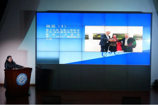 “文化摆渡者·育人奖”获奖代表罗春霞老师分享了她参与“文化摆渡者”建设和发展相关工作中的事迹,并表示自己将继续为学院文化建设、文化交流做贡献,承文化摆渡,扬文明华音。