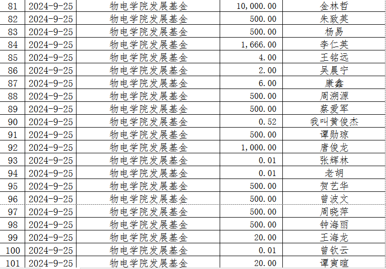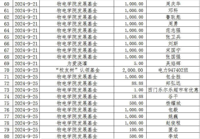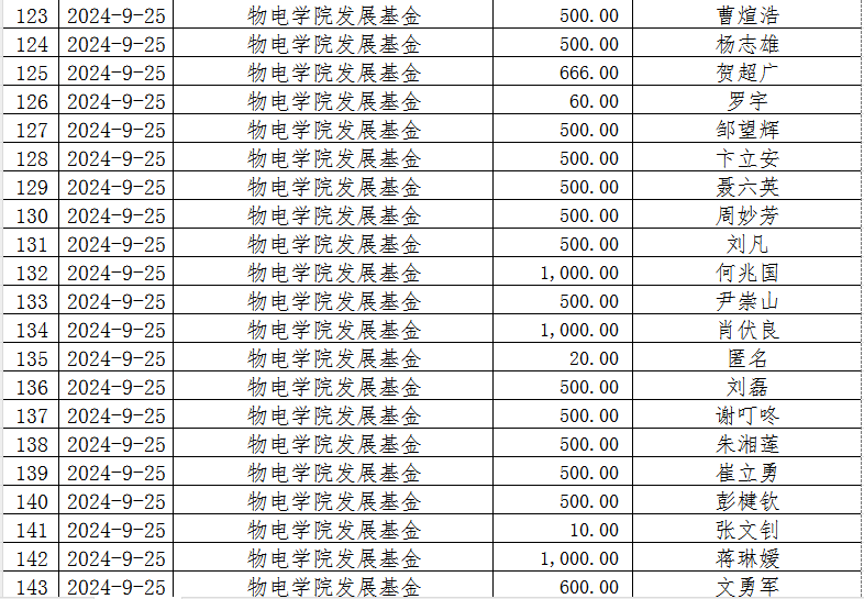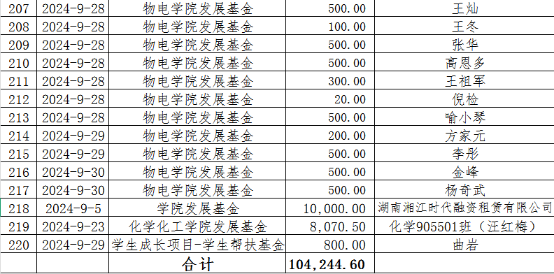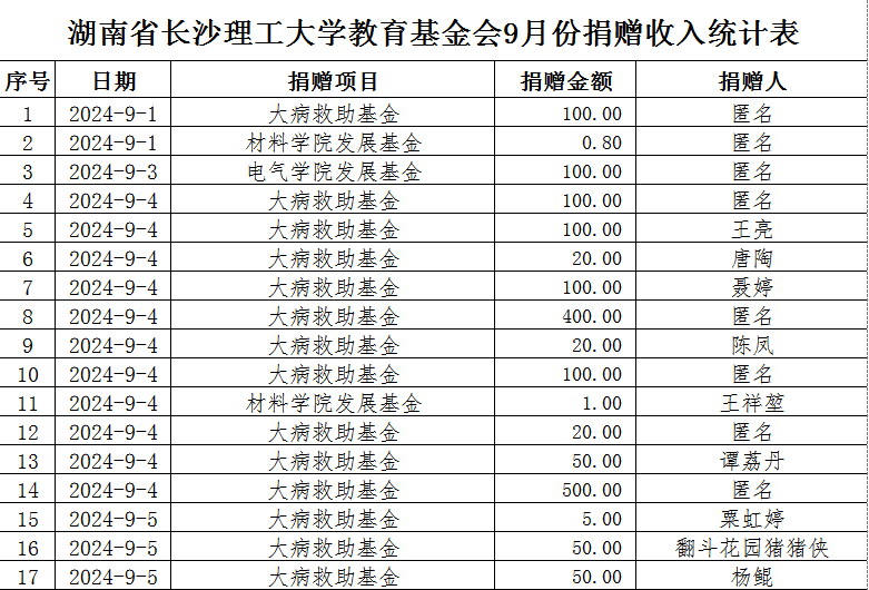 湖南省2025年新澳门原料网站教育基金会2024年9月捐赠收入表