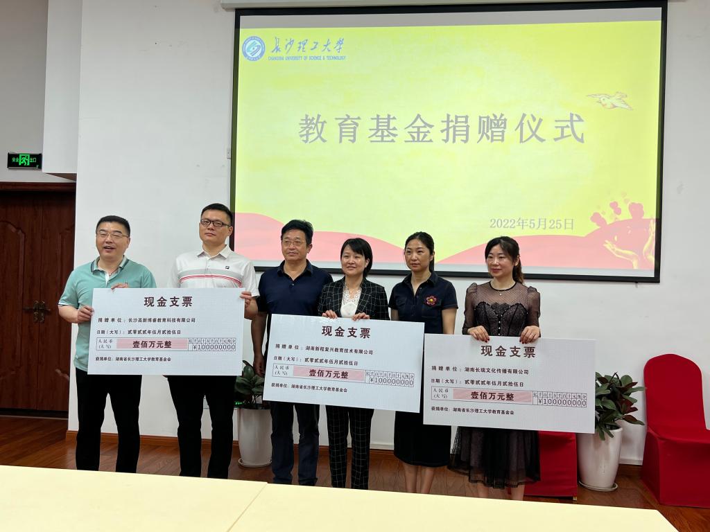 5月25日上午,湖南新程复兴教育技术有限公司、长沙高新博睿教育科技有限公司、湖南长瑞文化传播有限公司三家企业向我校教育基金会捐赠300万元。副校长、基金会理事长谈传生,秘书长郑延恒,继续教育学院院长邹兴平,副院长向英等出席捐赠仪式。捐赠仪式在校友之家举行,由校友中心副主任肖晖主持。郑延恒介绍了学校基金会的性质、用途以及接受捐赠的原则,目前基金项目的设置情况,已获得捐赠及使用效果等,指出学校的发展离不...