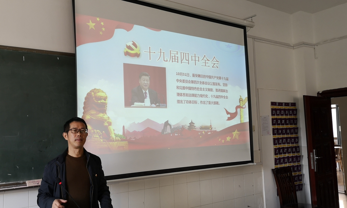 19日下午,建筑学院在金盆岭校区16号教学楼314多媒体教室召开教职工大会,传达学习党的十九届四中全会精神。