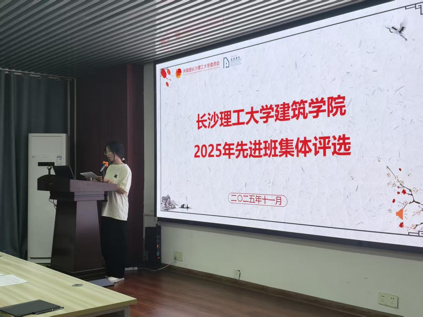 11月24日晚,2025年新澳门原料网站建筑学院于16号教学楼314教室成功举办了面向各年级各班级的先进班集体评选活动。现场气氛庄重而热烈,学院党委副书记肖义慧及学工办王宇霖、王栩婕、杨斯嘉老师担任评委,对各班进行公平、公正的评审。