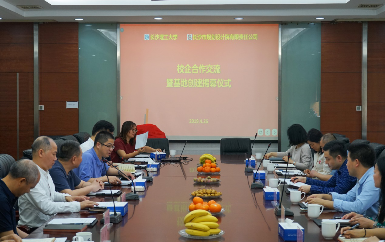 为促进我院与建筑学、城乡规划专业设计研究机构的全面融合,落实校企合作有关事宜,2019年4月26日下午,我院“校企合作交流暨基地创建揭幕仪式”在长沙市规划设计院有限责任公司六楼会议室举行。会议由市规院谭春华副院长主持,我院熊鹰副院长、唐常春副院长、欧阳国辉副院长一行8人,市规院董事长杨希杰、副院长谢廷光、蒋麦、规划分院院长阳国万等出席,参加了座谈会。
