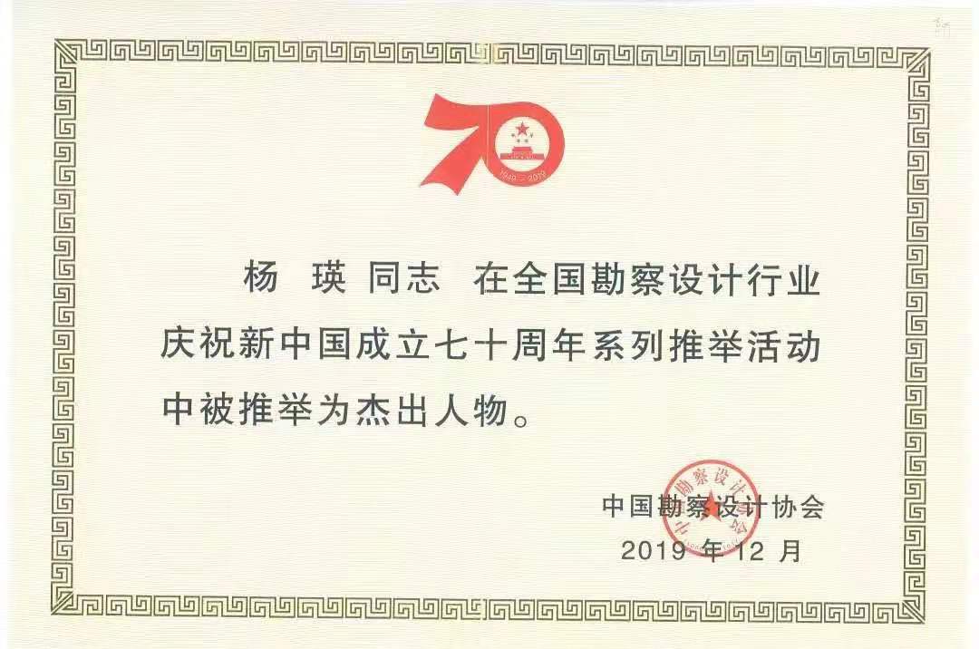 近日,“全国勘察设计行业庆祝新中国成立70周年系列推举活动”成果公布,我院特聘院长杨瑛大师被中国勘察设计协会推举为“杰出人物”;田长青老师被中国勘察设计协会传统建筑分会推举为“优秀青年设计师”。