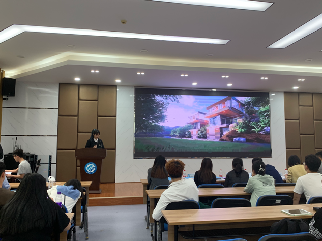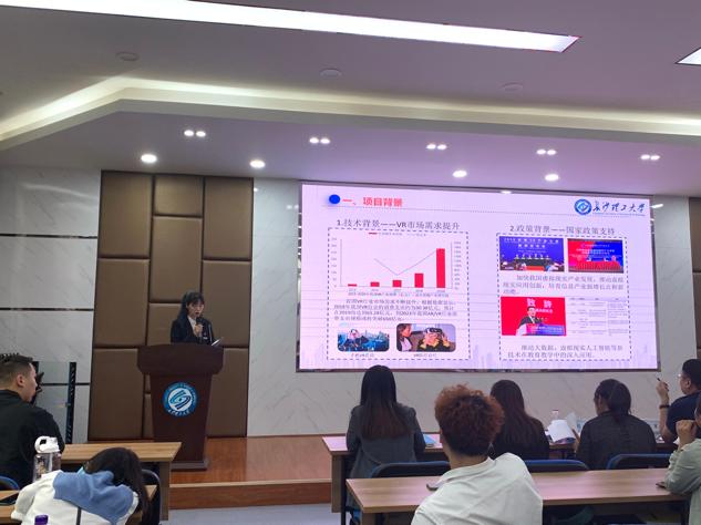此次答辩由宁姝棋同学主讲,她们团队的项目为“基于VR技术的红色古建故事性体验开放项目”。这个项目结合了红色旅游热度持续增长的市场背景和VR信息技术的迅速发展情况,旨在利用互联网技术增强旅游创新,通过建筑学知识帮助游客理解和继承红色精神,保护古建,带动相关经济产业发展。她展示了建筑模型VR成果、小组创建的“VR乐享”APP平台、黄兴故居实地调研报告、故事性体验兴趣的调查报告、盈利分析报告等材料,以实事求是和严谨科学的态度把项目流程和成果展现在大家眼前。现场评委对他们严谨科学的态度和辛苦付出的汗水给予了肯定。