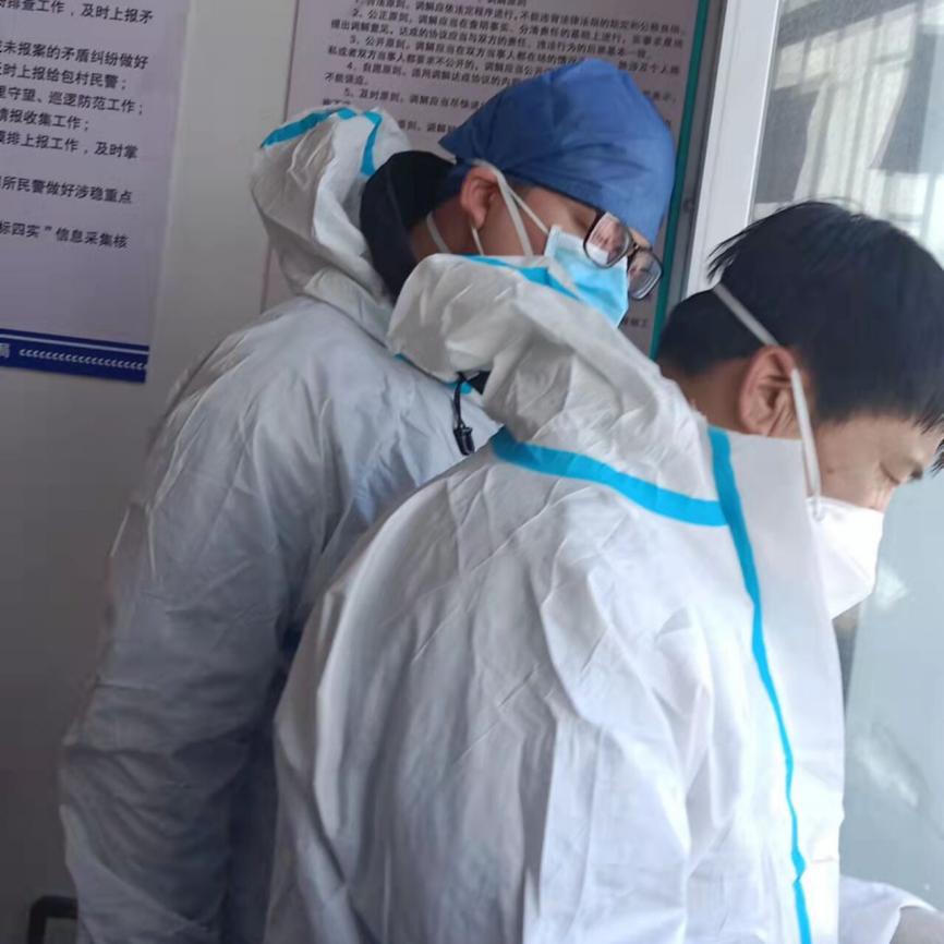 疫情严峻,吉林情况不容乐观。李含崧的家乡凤响村离长春较近,感染风险较大,但他没有畏惧。自3月12号以来 连续奋战17天 共15轮核酸检测,他一直坚守在自己的岗位上。“我的工作不是什么技术活,作为大学生,虽然没办法像医护人员那样服务,但是也能做好本职工作,为疫情贡献自己的力量。”在寒风中,穿着厚重的防护服,他收集登记每个村民的个人信息,把检测情况进行统计,对检测场地、防疫重点区域进行消毒作业,搬运大量的口罩和其它医疗物资,每天的工作时间都在八小时以上。他把为大家服务当成了自己的本职工作,默默无闻、不求回报。