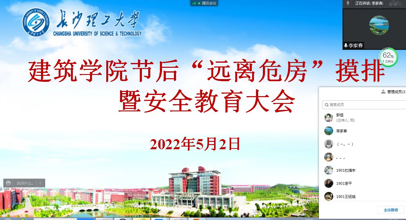 为深刻汲取近期国内外重大安全事件教训,补齐漏洞短板,坚决维护广大师生生命安全,52日,建筑学院组织开展了“远离危房”专项排查活动,全面掌握学生走读和外宿情况,消除安全隐患,通过召开年级大会和主题班会等形式,采取线上与线下相结合的方式,进一步加强学生安全教育和管理,全院学工老师和学生共同参与。