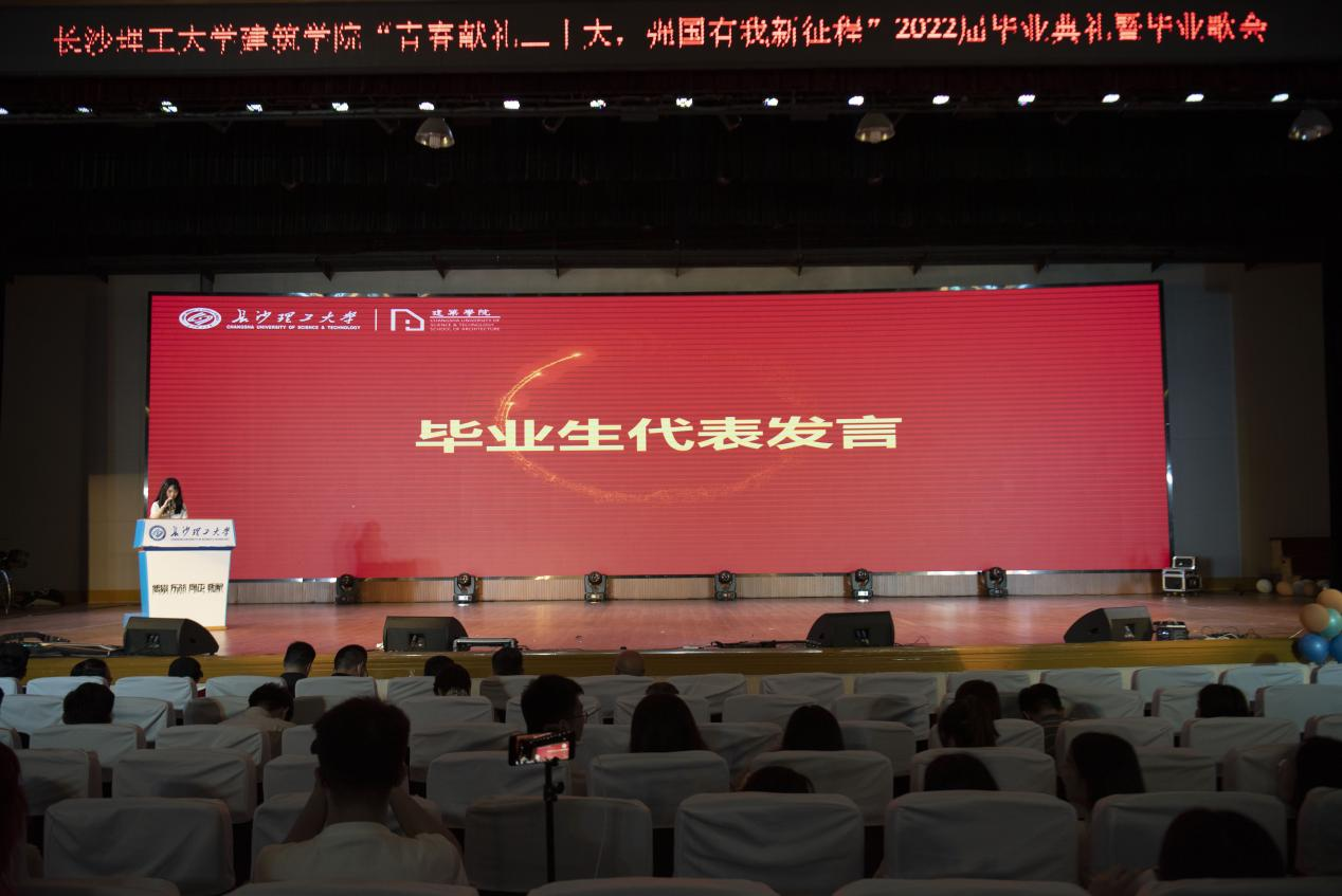 6月16日晚,建筑学院2022届毕业典礼在五教报告厅举行。建筑学院院长杨瑛、党委书记熊鹰、党委副书记李家春、副院长许建和、何川,学院部分教师代表和2022届全体毕业生参加了毕业典礼。典礼由2017级辅导员王宇霖主持。