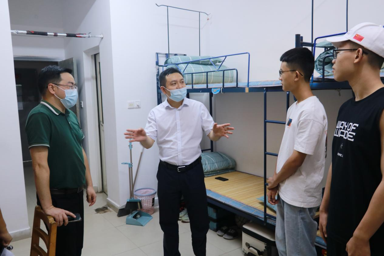 在宿舍中,学院领导与新生亲切交谈,询问新生到校后的生活情况,以及入学后的感受。学院领导提醒要做好疫情防控,保护好生命财产安全,共同营造温馨、和谐、安全的宿舍生活环境。同时,还给新同学们给予了生活和学习上的建议,叮嘱同学们要团结有爱,互相帮助;平时要重视身体健康,积极运动,多参与学校学院活动,让自己的青春在学习奋进中盛放,不负青春韶华,不负理想岁月。