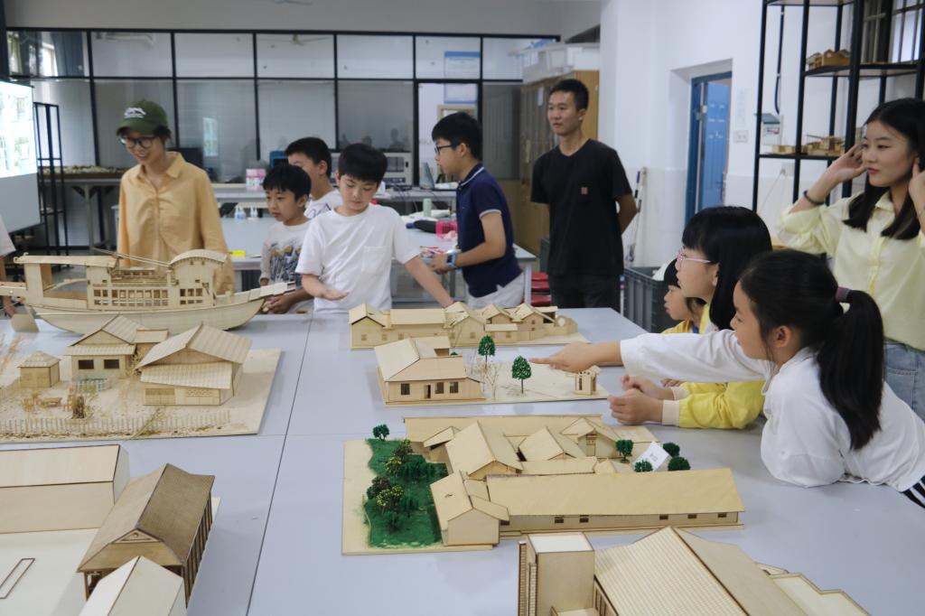 在模型教室,“新民学会旧址”、“南湖红船”、“粟裕纪念馆”……一件件小而精巧的建筑模型吸引了孩子们的目光。孩子们可能无法理解这些建筑的历史意义,但是他们一定清楚,今天的幸福生活来之不易,离不开这些建筑里的人和事。“别看红色建筑小巧,他们见证了一些伟大的历史转折。”讲解员老师这样说道。
