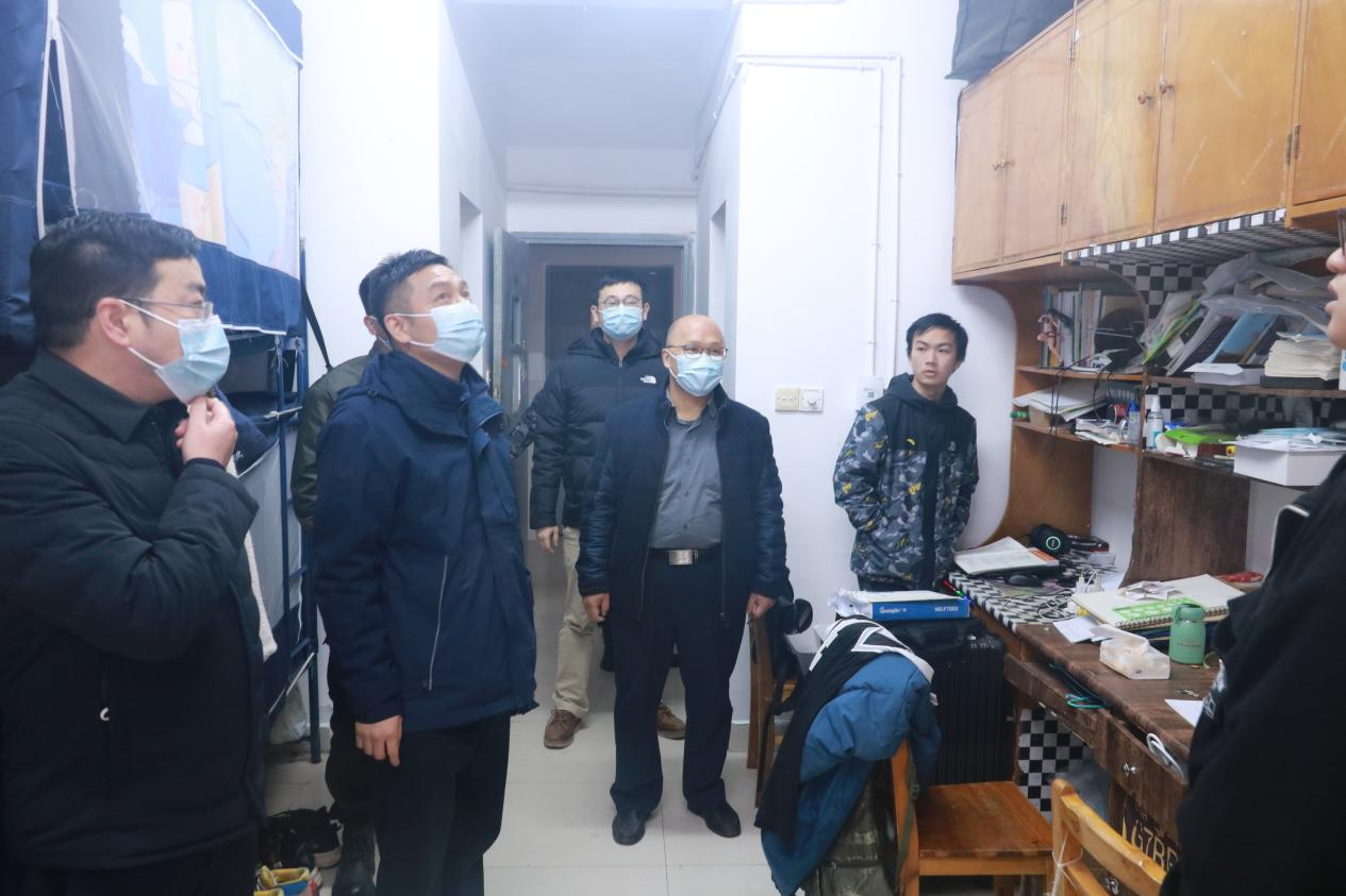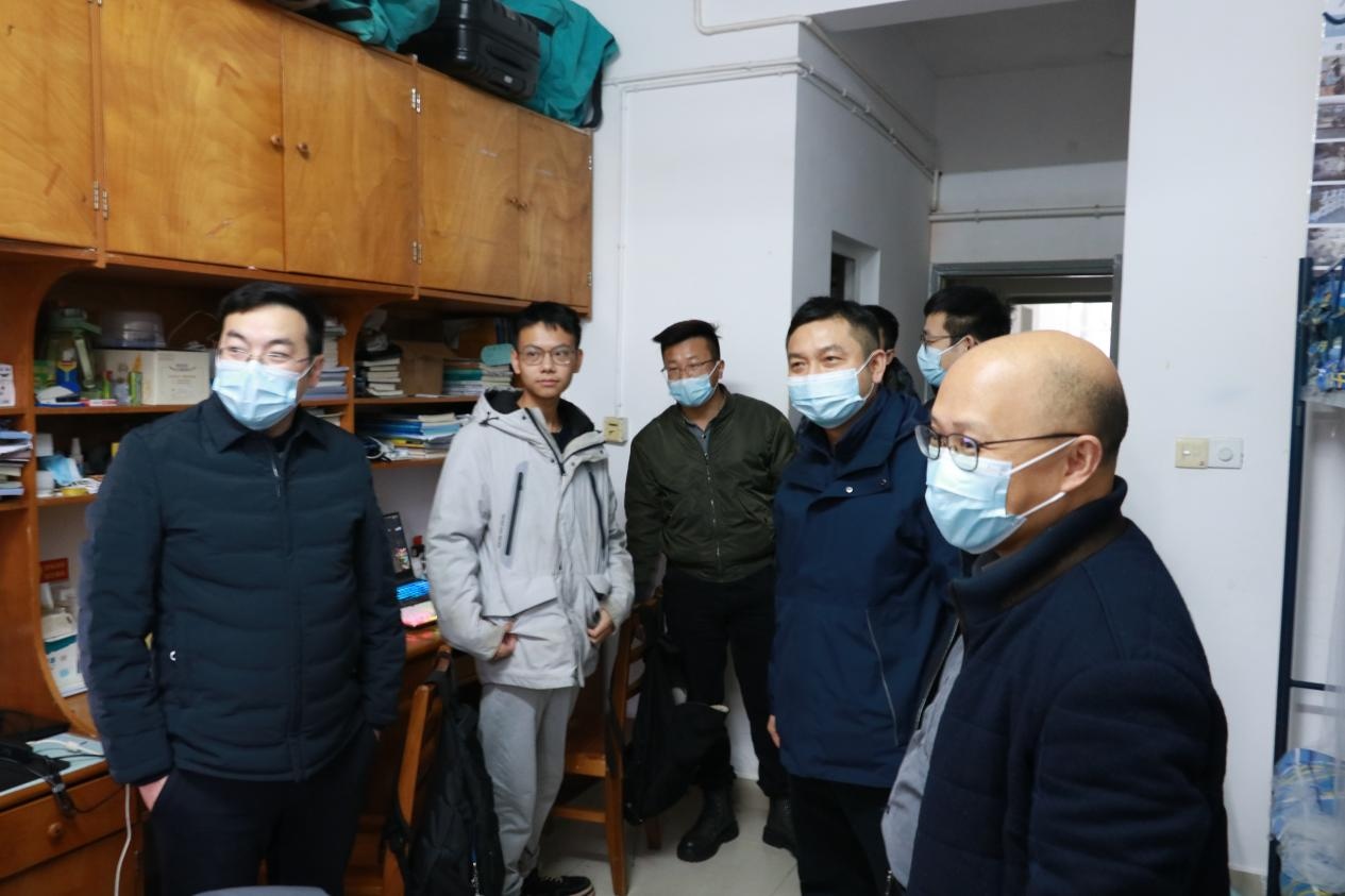 当前,省内疫情呈现多点散发态势,输入性传播风险加大,气温骤降也给学生宿舍带来了极大的消防安全隐患,为了更好的了解学生思想、学习和生活动态。11月30日下午,建筑学院党委书记熊鹰、副书记李家春、副院长何川及各年级辅导员深入走访学院本科生和研究生部分学生寝室,了解同学们疫情期间的学习情况,排查消防安全隐患,听取同学们的需求与心声,并进行了亲切慰问。