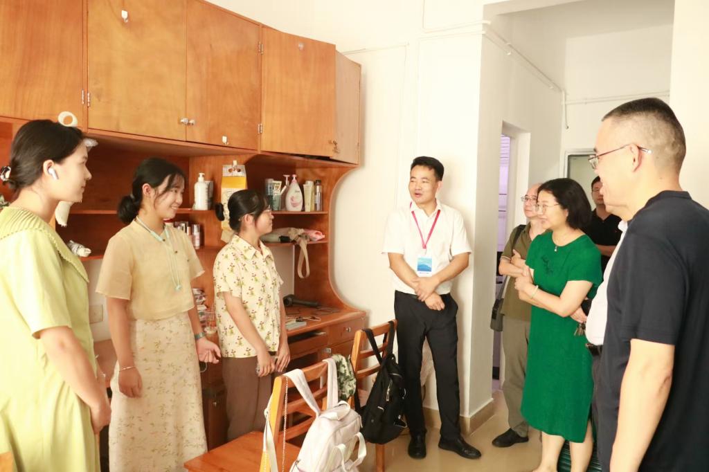 为表示对2024级新生深切关怀,9月15日上午,建筑学院党委书记熊鹰、常务副院长许建和、副院长周晨与吴荻子、代理副书记肖义慧,以及学院各专业系主任、支部书记、新生班主任和全体学工老师,一行人深入新生宿舍,为新生们带去了学院的真挚问候与美好祝福。