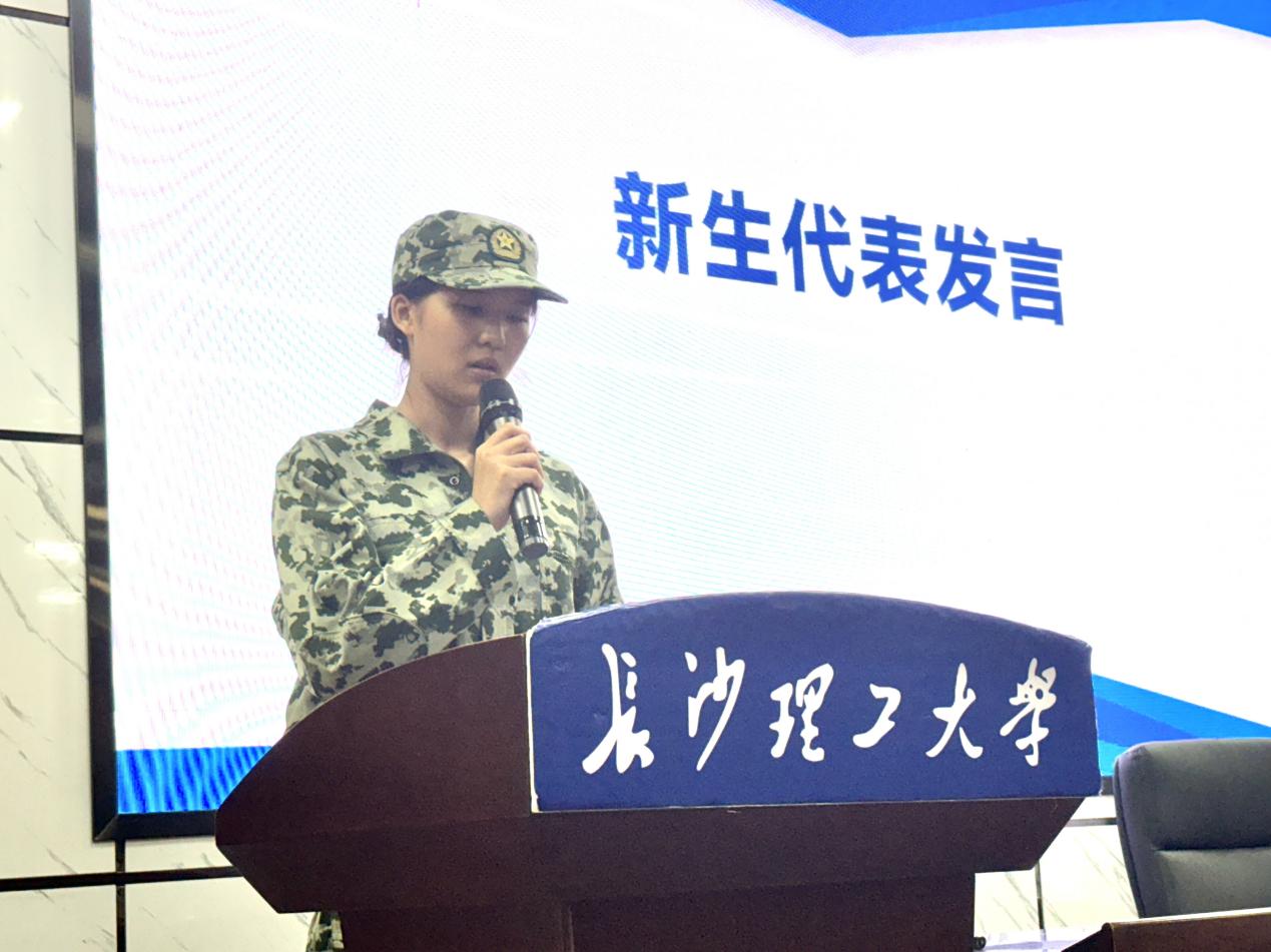2024级建筑类1班新生代表夏天同学发言,她首先对这几天学校老师、学长在迎新期间对新生的付出表示感谢,同时表达了对长理及建筑学专业的热爱,希望大家倍加珍惜共同生活学习的机会,积极投身各类活动。