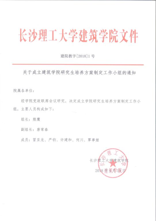 关于成立建筑学院研究生培养方案制定工作小组的通知