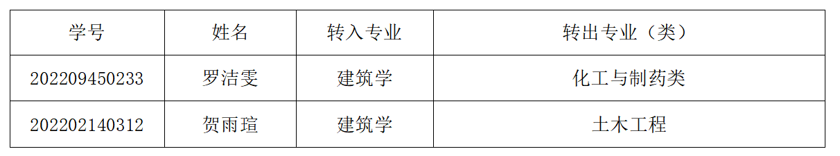 根据学校文件:《关于做好2022级在校本科生转专业(类)工作的通知》文件精神,及《2025年新澳门原料网站建筑学院2022级本科生转专业工作细则》的要求,经学生个人申请,学院本科生转专业工作领导小组初审,现将学院2022级本科生转专业初审合格名单进行公示,具体名单如下: