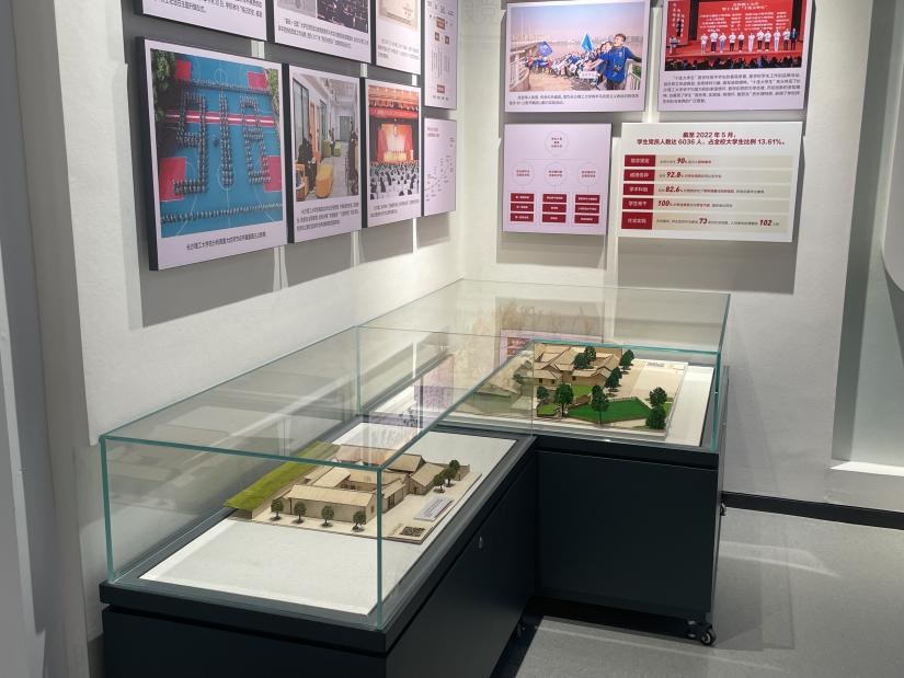 在讲解员的带领下,大家依次沿着“国之大者”、“材之茂者”、“师之贤者”和“行之实者”四个篇章路线参观,全方位了解了我校与时代同发展、与人民齐奋进,始终牢记“为党育人、为国育才”初心使命。在“材之茂者”主题中陈列有我院师生共同创造的陈树湘故居、许光达故居等多个湖湘红色文化地标的红色建筑模型。流光溢彩的“学科树”、微缩场景复原的港珠澳大桥和艺术沙盘等多种呈现形式,让学子们置身于多姿多彩的教育实践现场,身临其境地感受“三全育人”成果。