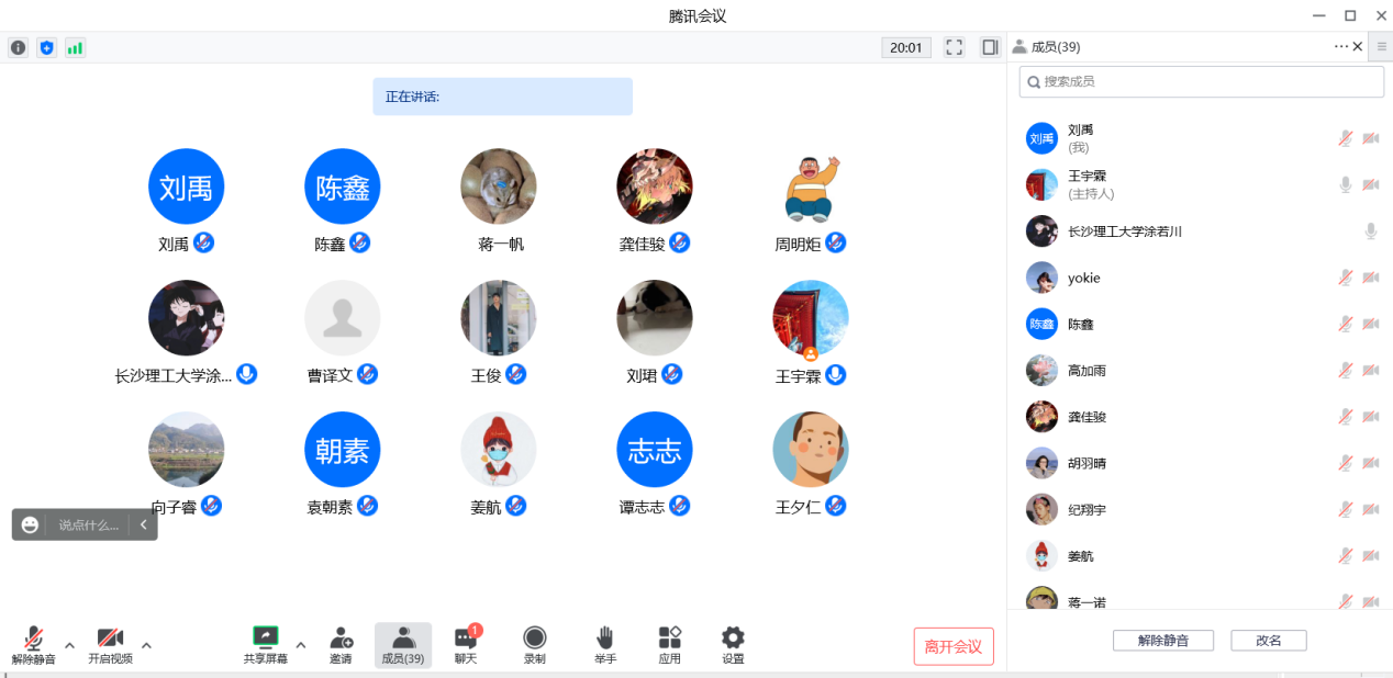 会上,王宇霖老师还就长沙疫情问题与大家进行探讨,对学校关于疫情期间的工作安排、学习安排进行了说明。除此之外,完成本学期学习和工作的任务的可以在钉钉申请提前离校,但假期离校后不允许随意进入校园与园区,在校内的同学减少非必要的外出和聚集。