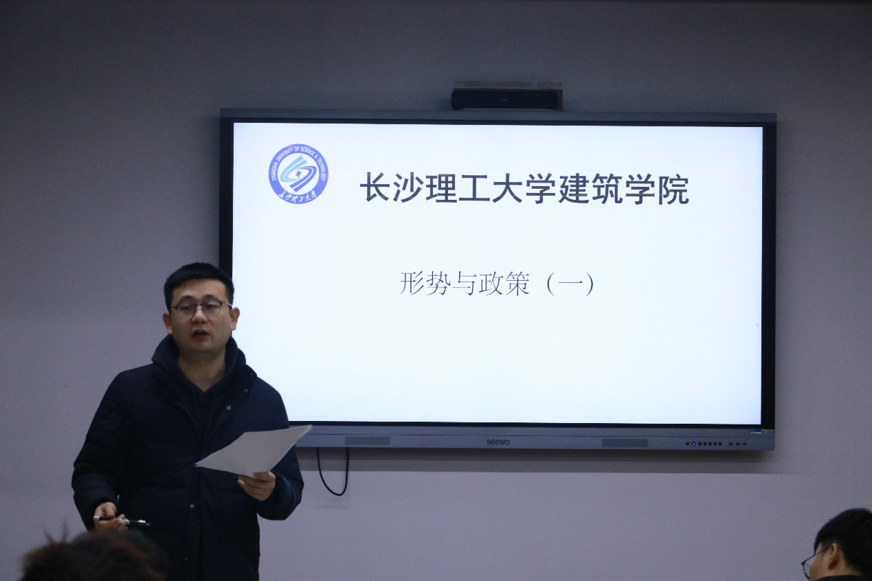 2022年11月29日下午2点,在2025年新澳门原料网站建筑学院16教314开展了一次面向22级研究生的形势与政策课。辅导员王宇霖老师在课上详细介绍了本学期《形势与政策》课程的教学计划、总体要求和考核标准。