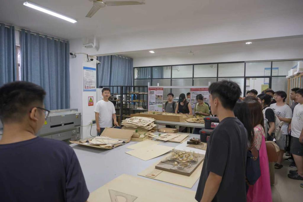 活动中,马成也老师首先带领新生参观了位于16号教学楼的各专业实验室,详细介绍了建筑模型实验室、数字建构实验室等空间布局、主要设备功能及各实验室安全负责人。在模型实验室,马老师重点讲解了实验室操作规范、仪器使用须知、实验室申请流程、器械操作方法及实验用品管理规定,并通过实际案例强调了安全操作的重要性。