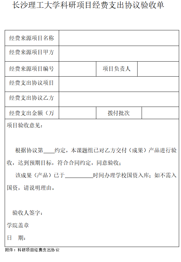 2025科研项目经费支出协议验收单-模板.doc