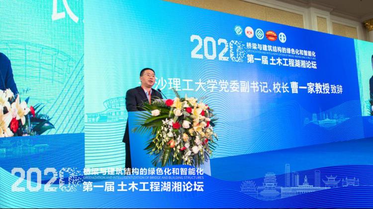 为积极践行党的十九届五中全会提出的“构建系统完备、高效实用、智能绿色、安全可靠的现代化基础设施建设体系”,全面落实习近平总书记在湖南考察时的提出“三高四新”重要指示,抓住“新基建”“智能制造”新兴优势产业链建设,走出一条创新引领、开放崛起,生态优先、绿色发展,区域协调、共建共享的路子,为富饶美丽幸福新湖南建设提供新动能,12月18—20日,以“桥梁与建筑结构的绿色化和智能化”为主题的第一届土木工程湖湘论坛在长沙召开。