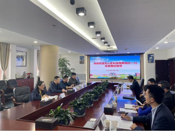 10月11日下午,天心区科技局局长蔡果时、副局长苏奇一行来我校开展高新技术、科技创新调研工作,我校校长曹一家、副校长曾祥君及科学研究部、科技成果转移转化中心相关负责人参加了会议。