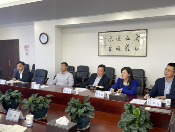 曾祥君代表学校对蔡果时一行来校调研表示热烈欢迎,并介绍了我校科学研究和学科建设的基本情况以及我校对标“三高四新”战略的科技创新工作。