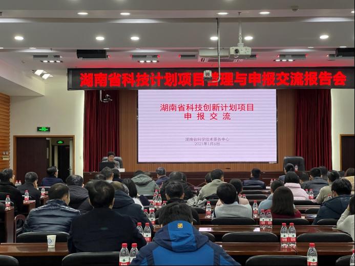 2022年1月6日下午,我校在云塘校区一办九会议室召开湖南省科技计划项目管理与申报交流报告会,邀请湖南省科学技术事务中心项目评审部部长段立军来校宣讲项目管理与申报政策。参加会议的有副校长曾祥君、科研部相关管理人员、各学院有意申报省科技计划项目的教师。会议由科研部副部长胡宏伟主持。