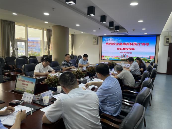 6月7日下午,湖南省科技厅二级巡视员彭敬东一行3人莅临我校,对湘江实验室建设工作进行调研。中国工程院院士郑健龙,副校长曾祥君、黄创霞,科研部、成果转化中心及相关学院负责人参加此次调研。