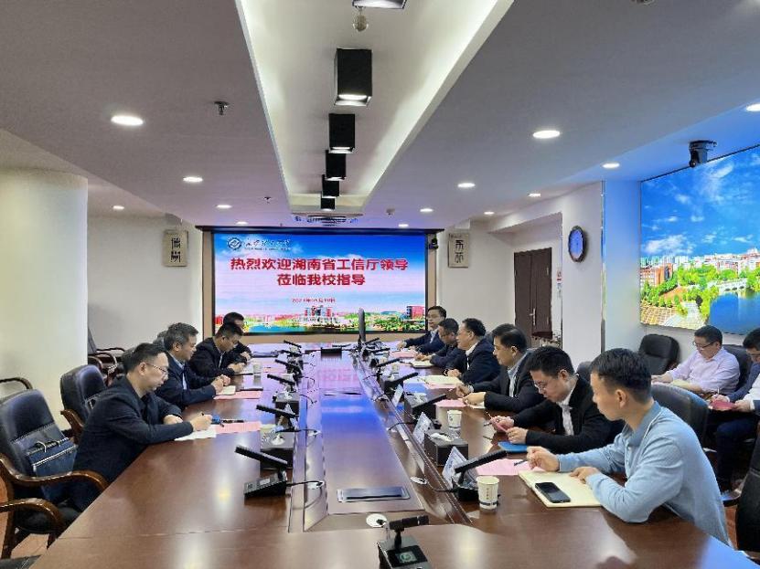 510日上午,湖南省工业和信息化厅二级巡视员李润仑、厅科技处处长肖洋扬一行来我校调研科技创新工作。校党委委员、副校长刘朝晖出席会议,科技处负责人及相关学院领导参加座谈会,会议由科技处副处长胡宏伟主持。