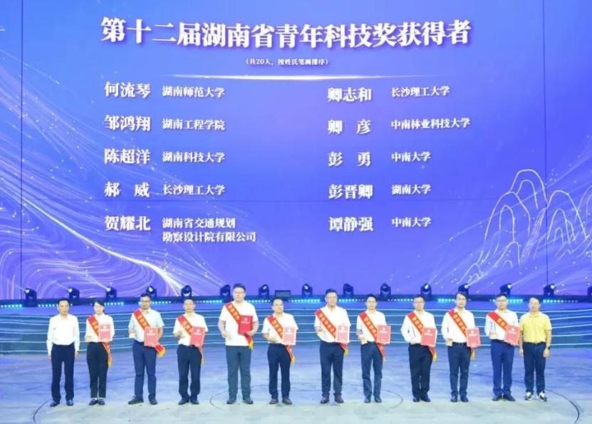 9月21日,在2023年全国科普日湖南主场活动现场,20名第十二届湖南省青年科技奖获得者受表彰。我校化学化工学院卿志和教授和交通运输工程学院郝威教授喜获第十二届湖南省青年科技奖。