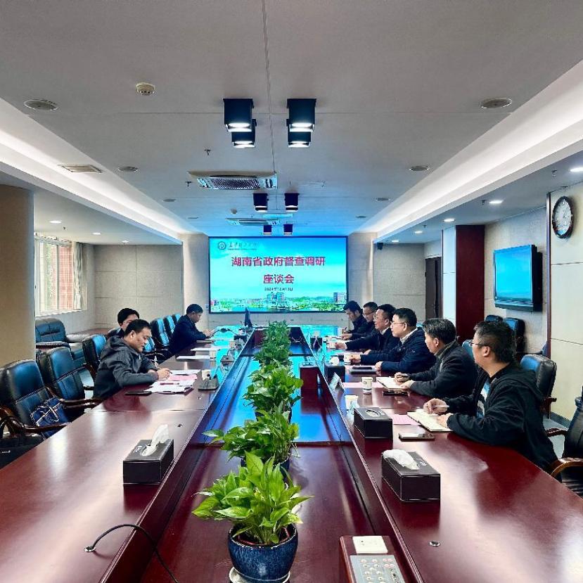 12月19日下午,湖南省财政厅党组成员、副厅长欧涛一行来我校督查调研科技成果转移转化情况。我校党委委员、副校长张军辉出席会议,省科技厅成果促进处副处长王帅、省财政厅市县财政处四级调研员李敏、省政府督查室一级主任科员蒲伟参与调研,我校科技处相关负责人、学院教师代表参加调研座谈会。会议由科技处处长胡林主持。