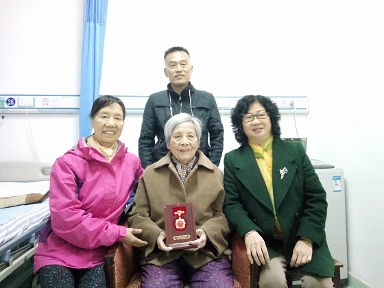 11月18日,冬寒突袭长沙,一片冷风肃杀。第19自助小组组长庄艳平、离退中心联系人何卿如和小组成员王晓明老师一行三人,驱车前往长沙市建设医院看望慰问89岁的南下离休女干部周学毅老师。周老看到我们前来慰问,心情非常激动,拿出中华人民共和国成立七十周年中共中央、中央军委颁发的纪念章,和我们一起分享当年跟着毛主席打天下,从北到南,艰苦征战的革命历程和解放后终身奉献党的教育事业的光荣历史,表示要紧跟习近平总书记"不忘初心、牢记使命"的主题教育思想,继续前进,永葆革命青春。