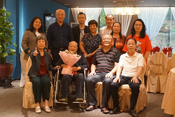 10月7日,周旭明一行到佛山西樵镇为百岁老人周佐明祝寿,同时送上鲜花和生日慰问金,祝福老人家福如东海、寿比南山。虽为百岁老人,周老精神矍铄、思路清晰、口齿清楚,对学校专门派人前来看望祝寿非常激动,不断连连道谢,感谢党、感谢学校、感谢组织。老人家四世同堂,子孙孝顺,对于离退休中心同志的远道而来,他们一再表示感谢,对于学校的关爱感激万分。